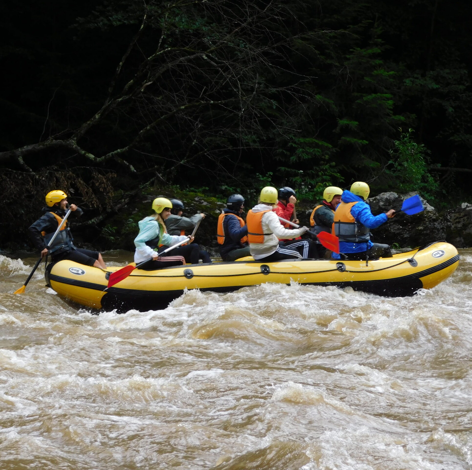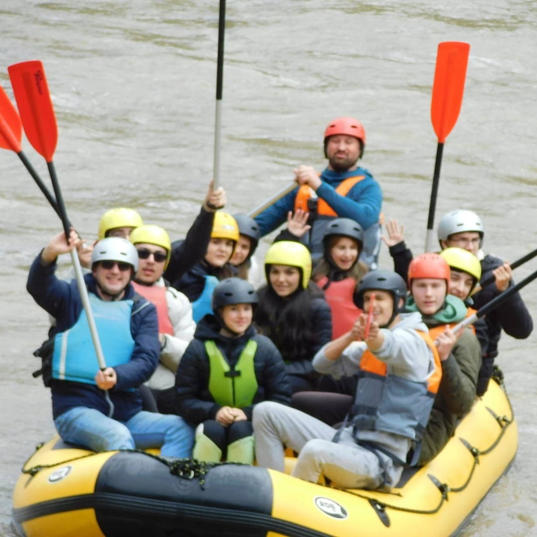 Durata:Tura de rafting durează aproximativ 3 ore (2 ore efective pe apă și 1 oră pentru echipare, instructaj + învățarea comenzilor, dezechipare, transport la mașini)
